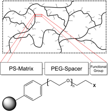 As TentaGel® resins are copolymers composed from polystyrene and poly (ethylene glycol), chemical and physicochemical properties of both base polymers have to be taken in account.