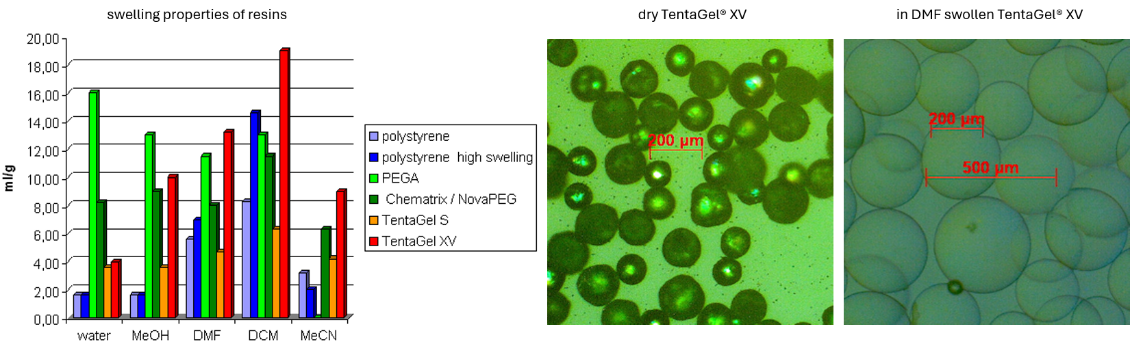 Figure 2: detailed swelling information of the TentaGel® XV.